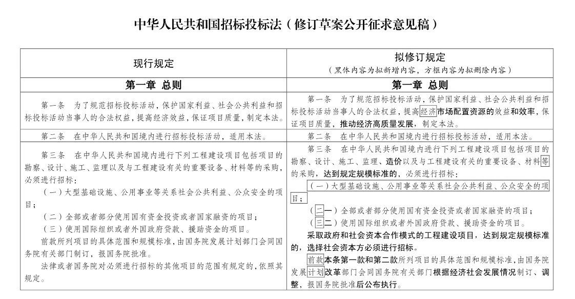 中华人民共和国招标投标法(修订草案公开征求意见稿)