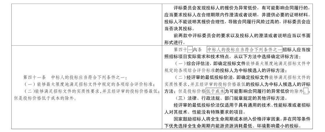 这次修订主要针对最低价中标、评标方法、中标候选人、评定分离等热点内容,相比之前都有较大改动,也是整个行业最关心的部分。